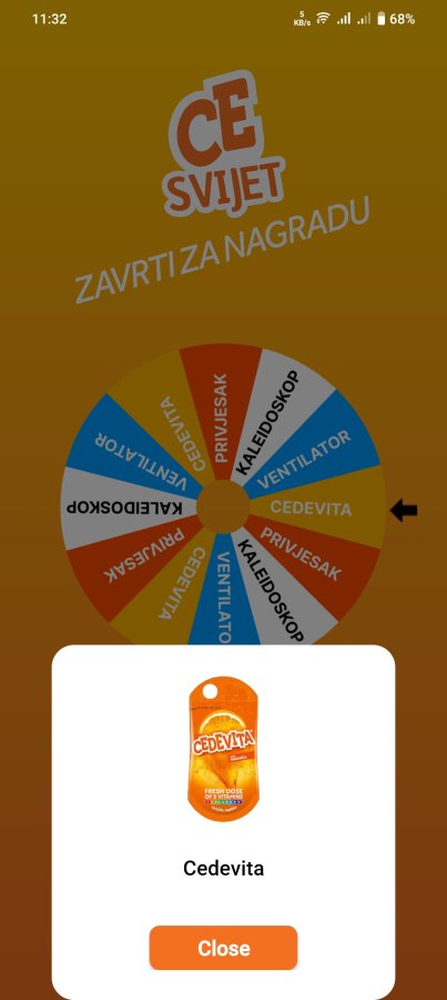 Cedevita is a street-based, mobile-first luck-spinning application designed to deliver casino-style game excitement in real-world, physical environments. The app enables users to participate in location-specific spin games, where prizes are distributed based on real-time inventory availability configured locally for each venue or event.