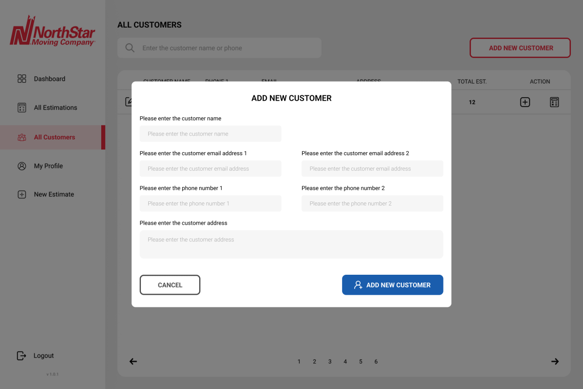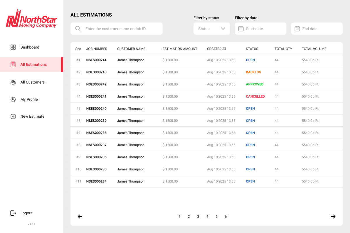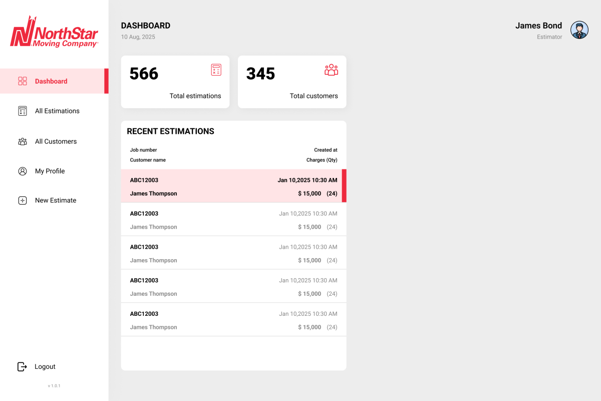 NorthStar Moving Company is a mobile-first estimation and pricing platform designed to digitize and standardize how moving service estimations are created, reviewed, and approved. The system consists of a dedicated Estimator Mobile App and a Super Admin Web Panel, enabling fast, accurate, and transparent cost estimation for residential and commercial moving services.