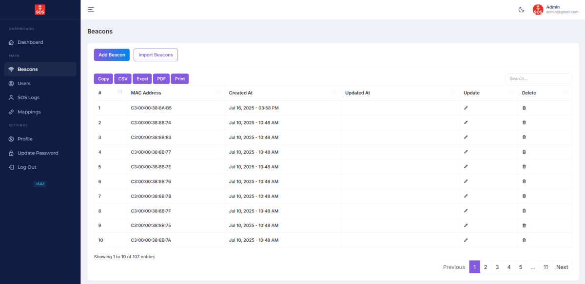 Super admins manage all companies, users, employees, and beacon inventories across the platform. From beacon provisioning using MAC addresses to multi-company mapping and global analytics, the system ensures full operational visibility and control.