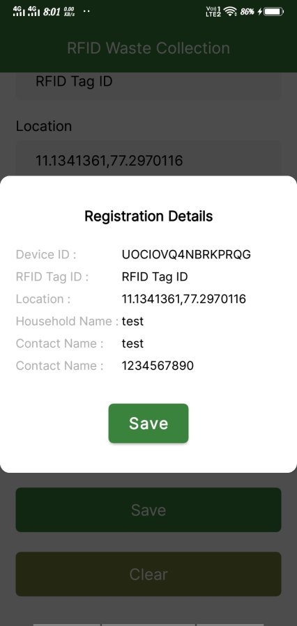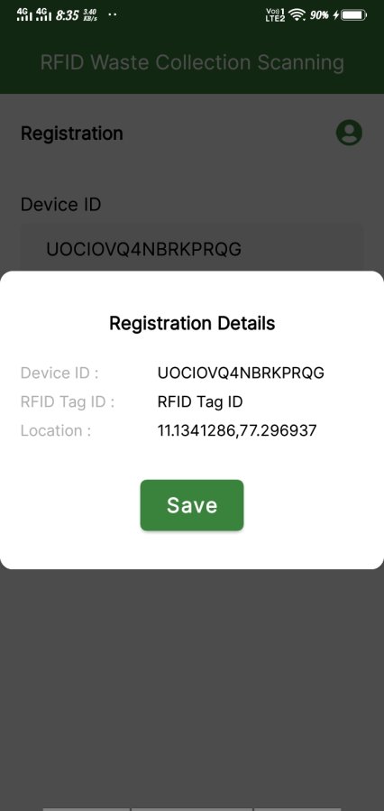 RFID Waste Collection Scanning is a modern waste-management application designed to digitize and automate the entire waste collection lifecycle using RFID technology. Each waste collection point is tagged with a unique RFID identifier, enabling field operators to authenticate and record pickups instantly through a simple mobile scan.